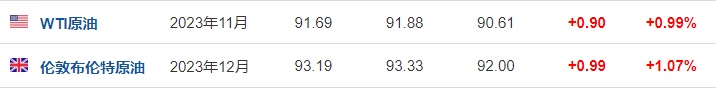 3. 截至发稿,WTI原油涨0.99%,报91.69美元/桶。布伦特原油涨1.07%,报93.19美元/桶。