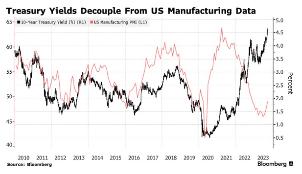 周一,基准美国国债收益率跃升至16年来的最高水平,延续了自5月份以来的上升趋势。摩根大通认为,最新的飙升表明,美国国债已经脱离了其基本面驱动因素。经济学家Ed Yardeni称,这一走势表明,人们对财政政策制定者的所作所为越来越感到担忧。