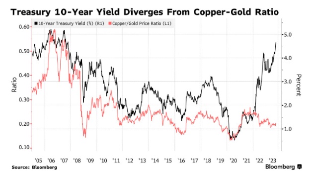 Yardeni指出了一个打破传统相关性的例子。“从2005年到2019年,债券收益率与铜和黄金的价格比率高度相关。从那时起,他们就出现了明显的分歧,”他表示。