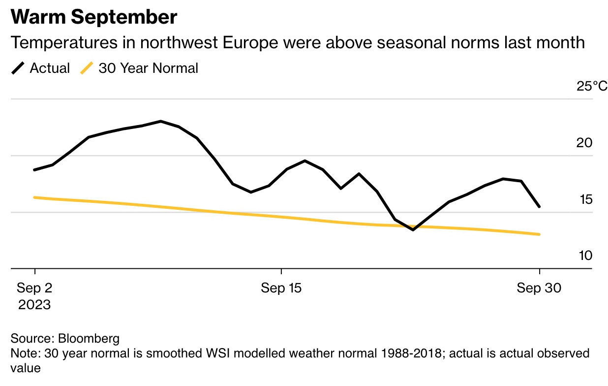 天气预报机构Maxar预计,到本周周末,伦敦、法兰克福、巴黎等地的气温将升至20摄氏度以上,并将至少在本月中旬前保持在往年平均水平以上。温暖的天气将推迟供暖季的开始,