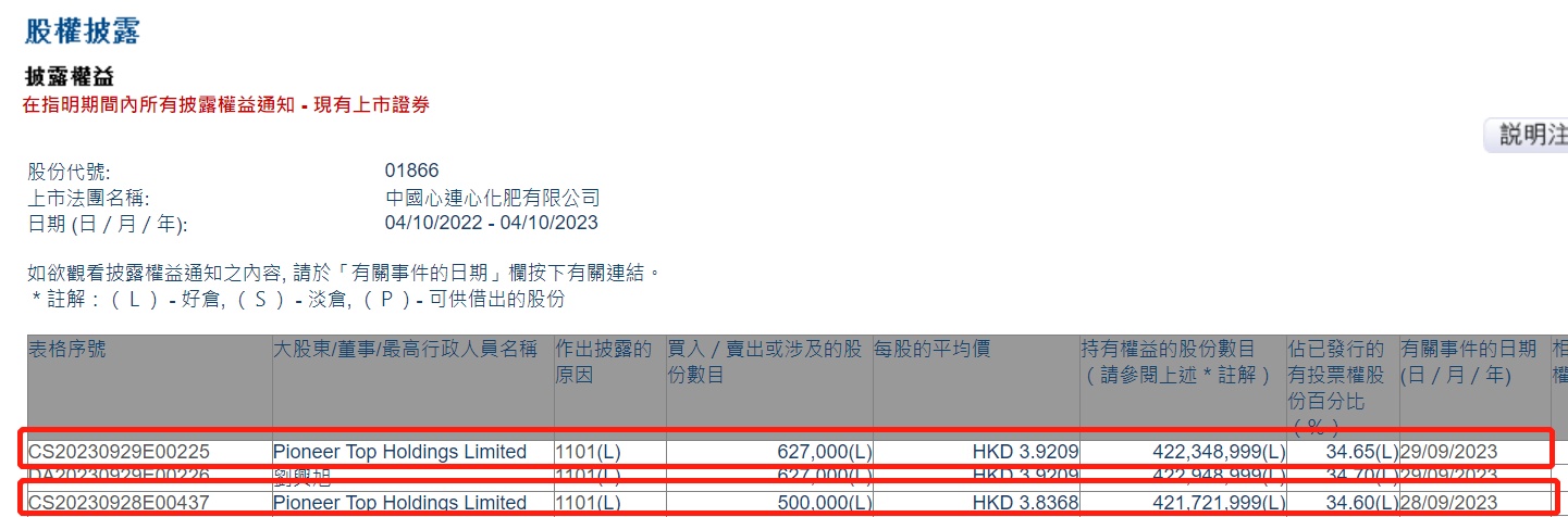 Limited两日分别增持中国心连心化肥(01866)50及62.7万股,每股作价分别为3.8368港元及3.9209港元,总金额约为437.68万港元。增持后最新持股数目约为4.22亿股,最新持股比例为34.65%。