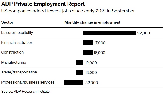 ADP私营部门就业报告——今年9月,美国企业增加的就业岗位是自2021年初以来最少月份