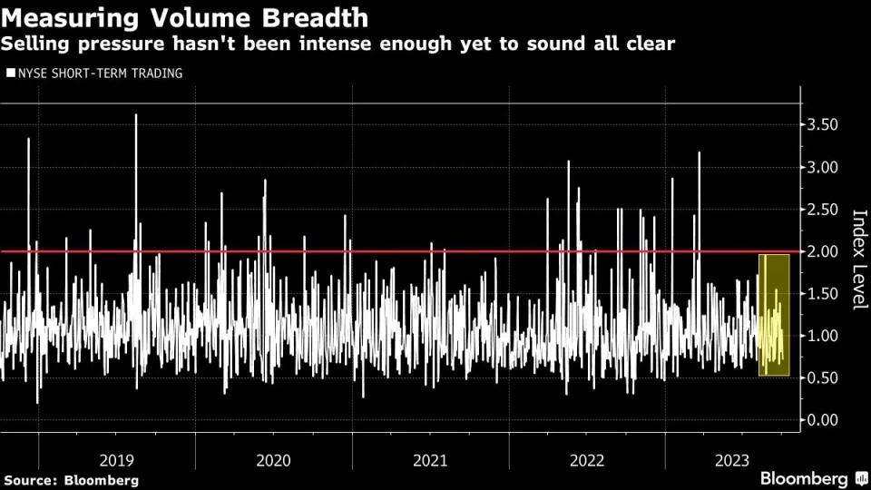 技术指标观察人士认为,当股价下跌得如此之快,以至于几乎没有进一步下跌的空间时,股市就处于超卖状态。但广度和成交量等技术信号需要进一步改善,才能确认最新一轮市场阵痛已经过去。标普500指数成份股中约有35%的股票交易价格高于200日移动均线。Oppenheimer高级分析师Ari Wald指出,通常情况下,这一数字需要降到20%以下,交易员才会认为股市已经投降。