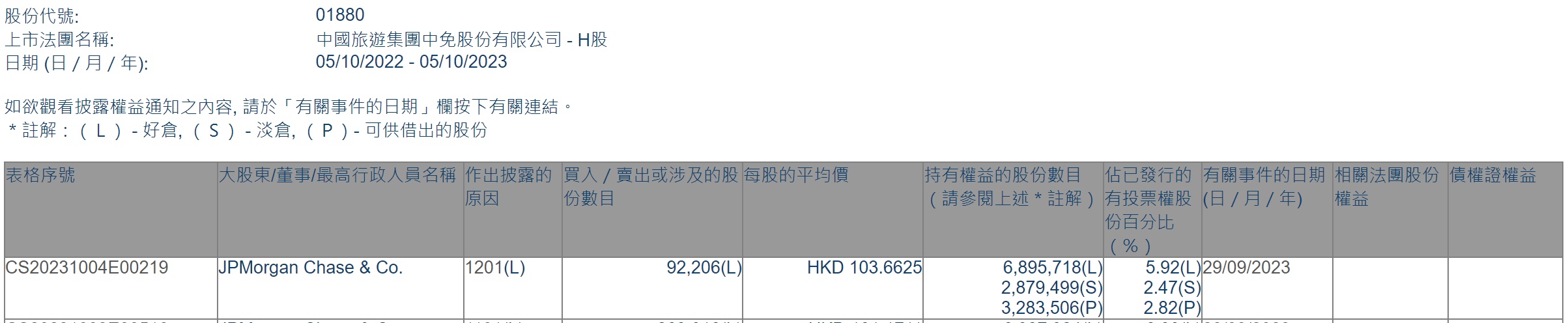 智通财经APP获悉,香港联交所最新资料显示,9月29日,小摩减持中国中免(01880)9.2206万股,每股作价103.6625港元,总金额约为955.83万港元。减持后最新持股数目约为689.57万股,最新持股比例为5.92%。