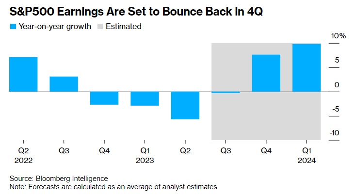 根据彭博行业研究(Bloomberg Intelligence)编制的分析师预期数据,标普500指数成分公司在第四季度的整体净利润有望在这一时期同比增幅达惊人的7.6%,结束连续四次的利润收缩趋势。