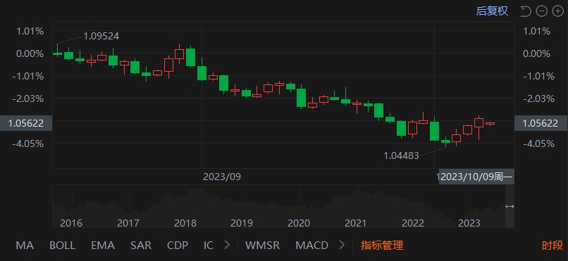 该分析师最近下调了对欧元的年底汇率预测,从1.06美元下调至1.02美元。截至发稿,欧元兑美元汇率下跌0.2%至1欧元兑1.056美元。