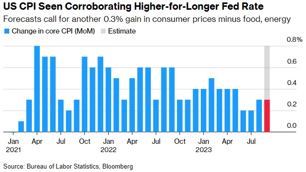智通财经APP注意到,美国剔除食品和燃料的消费者价格指数(CPI)预计将连续第二个月上涨0.3%。经济学家青睐该指数,认为它能更好地反映潜在的价格压力。按年计算,核心CPI预计会降温,但这是基数效应的反映:去年9月的CPI涨幅是1982年以来最大的。