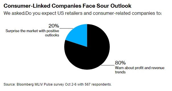 受高债券收益率影响而步履蹒跚的美股正面临新的威胁,因为美国消费者支出趋势的减弱,预计将引发一系列盈利预警。