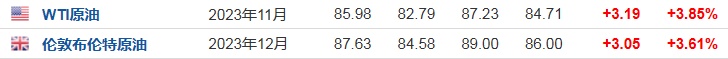 此外,市场担心若此次军事冲突进一步升级,可能加剧拥有全球近三分之一石油供应的中东地区的紧张局势。受此影响,油价同样走高。截至发稿,布伦特原油期货价格涨3.61%,报87.63美元/桶;WTI原油期货价格涨3.85%,报85.98美元/桶。
