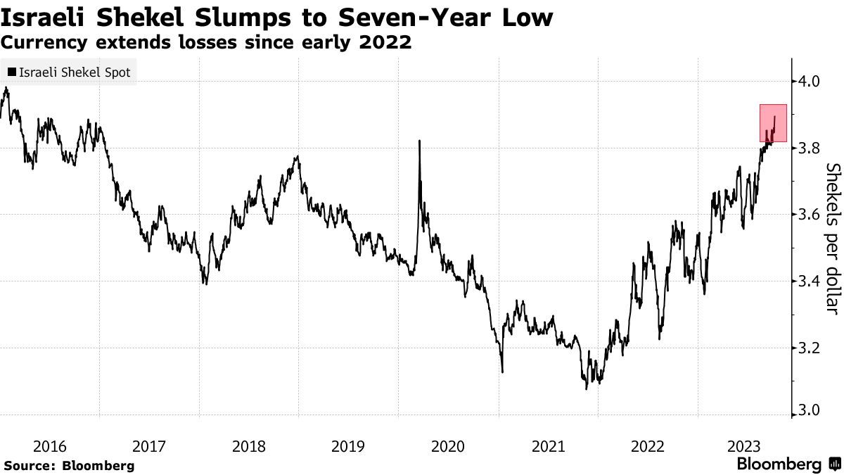智通财经APP获悉,由于以色列和巴勒斯坦近日爆发新一轮大规模军事冲突,以色列谢克尔(以色列货币)走软。日内早些时候,美元兑以色列谢克尔汇率涨近2%至3.9146,为2016年以来最高水平。截至发稿,该汇率徘徊在3.90附近。