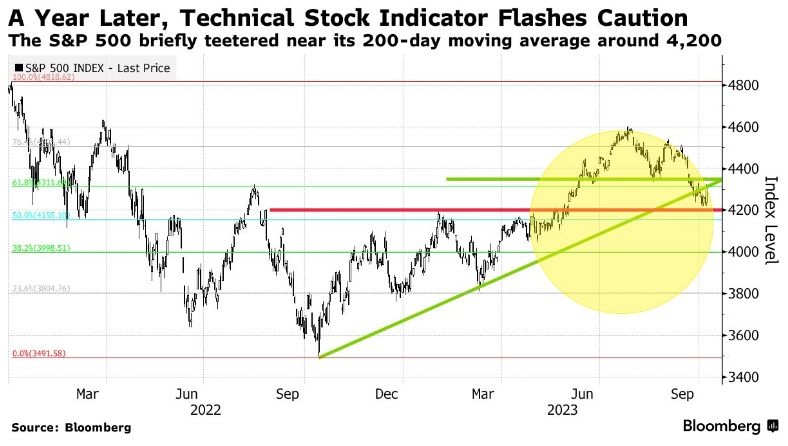 监控日平均线和其他衡量股市动能指标的技术分析师表示,如果抛售再度出现,标普500指数跌至4,200点以下,买家可以安全进场的突破位就很少了。上周五,该指数收于4309点。