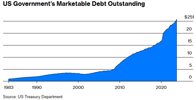 然而,在今天5%的利率下,数学计算就变得棘手了。政府的债务——以及其需要出售的债券供应——增长得如此之快,以至于足以压倒长期以来被认为是对世界上最安全的投资的永不满足的需求。