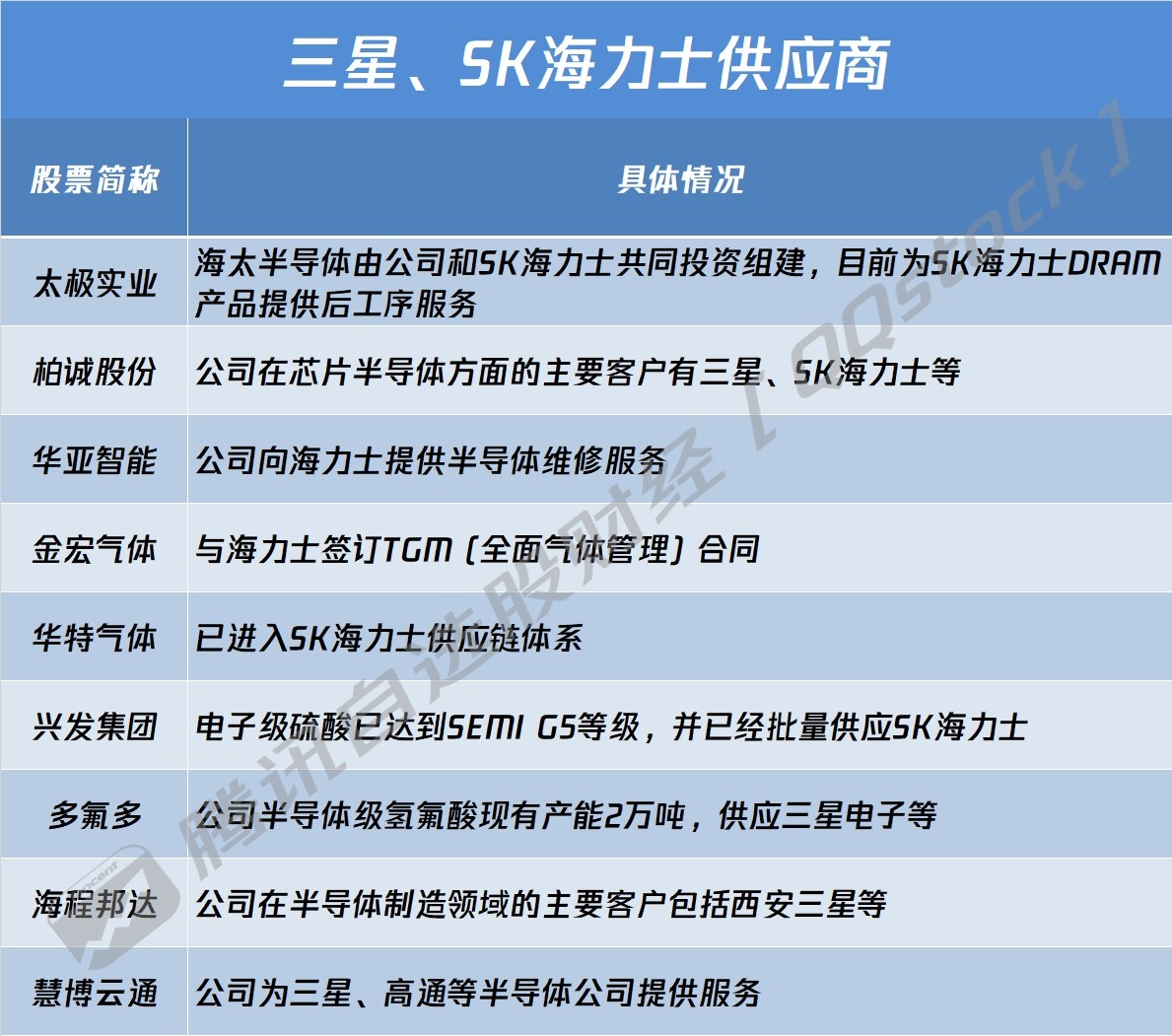 A股中这些公司已为三星、SK海力士提供半导体相关服务: