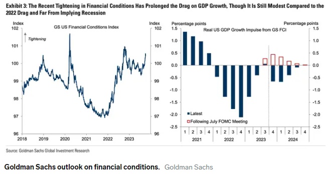 策略师们现在预计,金融环境收紧将在未来一年将GDP增速拉低约0.5个百分点,这将与资产市场的风险同时出现。