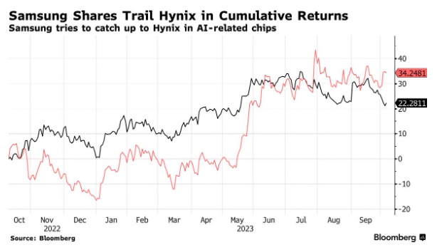 三星和SK海力士正竞相开发训练人工智能所需的工具。三星目前正在追赶SK海力士,SK海力士是人工智能芯片制造商英伟达(NVDA.US)下一代DRAM的唯一供应商。三星表示,计划到2024年将其生产高带宽内存的产能提高一倍。