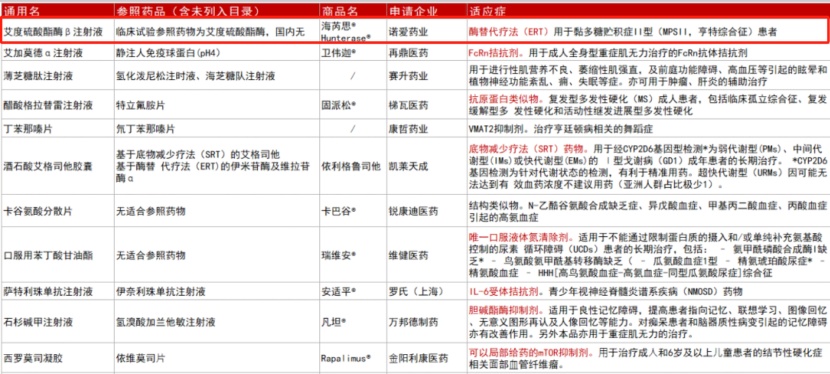 另外,在通过2023年医保初审的药品名单之中,共有25款目录外的罕见病用药,其中有11款药品为今年首次在国内获批上市,涉及百济神州、阿斯利康、北海康成、百时美施贵宝等企业,覆盖进行性肌营养不良、尿素循环障碍、黏多糖贮积症、I型神经纤维瘤病等罕见病病种。(以下为部分目录外罕见病用药)