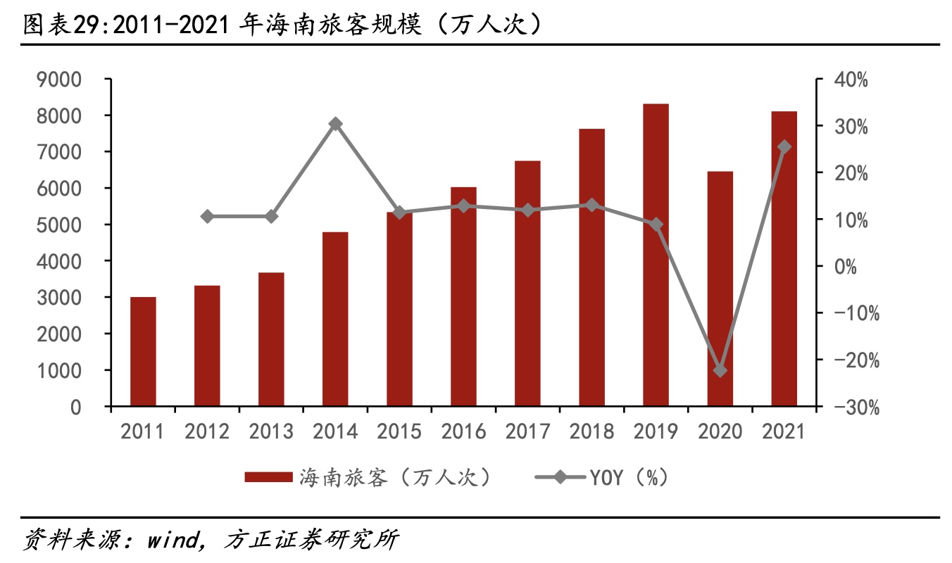 值得一提的是,十一假期过后,海南正式步入旺季,特别是12月海南赴岛游将迎来客流高峰,相关统计显示旺季与淡季相比客流多 30~40%。