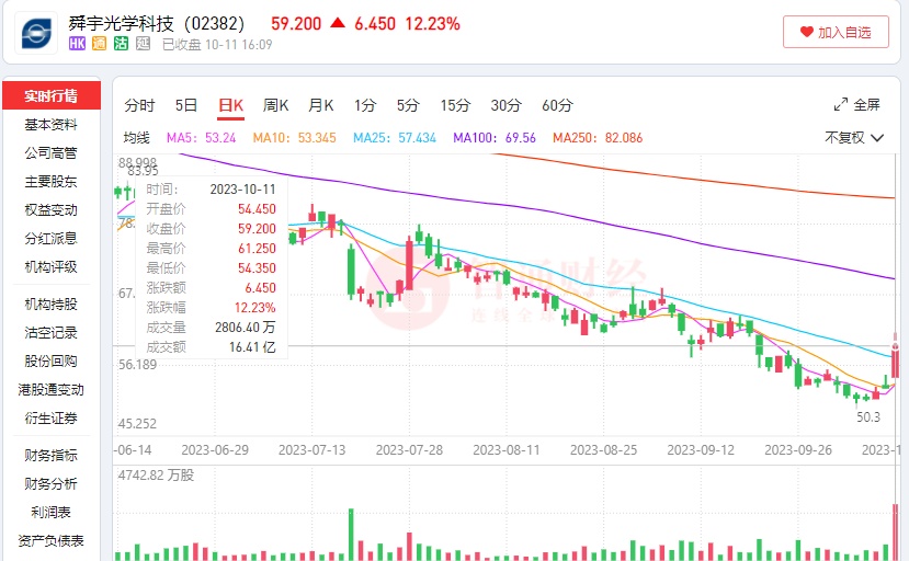 值得一提的是,10月11日,天风国际证券分析师郭明錤称,舜宇光学2025年将成为苹果iPhone和iPad新CCM供应商。受此消息影响,今日舜宇光学科技股价大幅走高,盘中最高涨超16%,截至收盘,涨12.23%,报59.20港元/股。