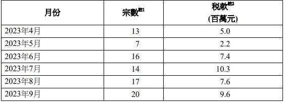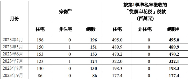 从价印花税(DSD)录得86宗,环比大幅减少33.85%,为有纪录以来新低水平;涉及税款1.77亿港元,环比下跌10.54%。