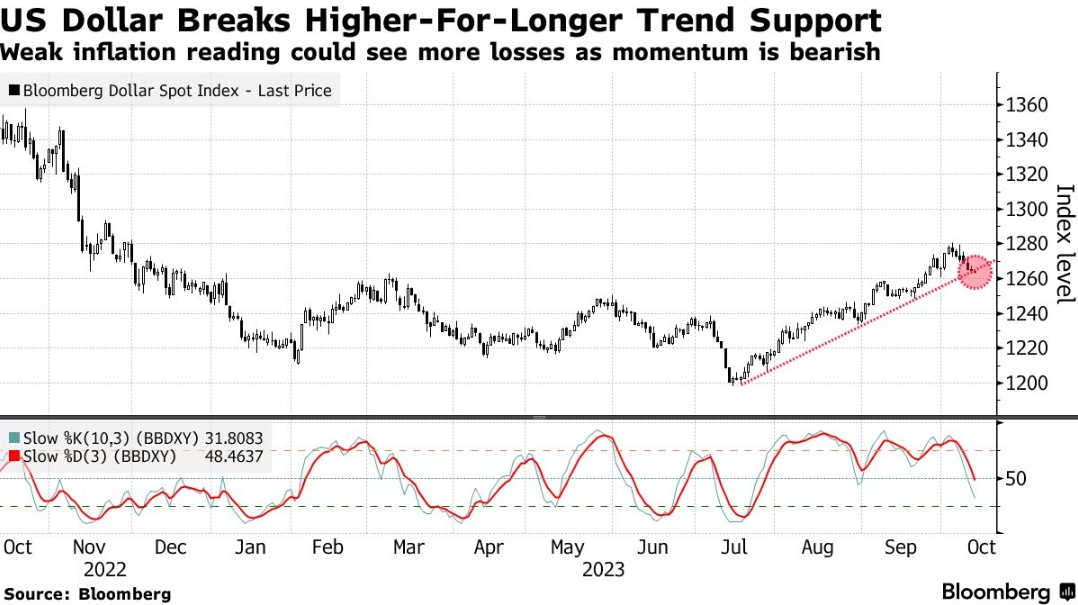 此前,该指数连续两个季度上涨,并在上周达到近一年来的最高水平,原因是投资者押注美国利率可能在更长时间内保持在较高水平。