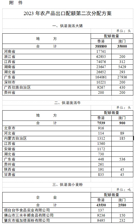 商务部关于下达2023年农产品出口配额第二次分配数量的通知