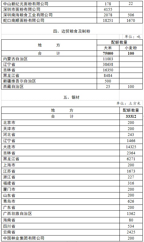 一、各地商务主管部门应及时做好供港澳活畜、边贸粮食及制粉、锯材出口配额的二次分配和核查、反馈工作,配额应重点分配给完成率高、经营能力强、货源质量好、品牌信誉度高的企业。统筹本地区出口实际,发挥配额导向作用,合理把握发放节奏。密切跟踪配额使用进度,做好配额动态调剂,提高配额使用率。配额二次分配方案应及时报商务部(外贸司)备案,同时抄送商务部配额许可证事务局、中国国际电子商务中心和相关出口许可证发证机构。