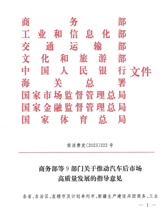 商务部等9部门联合发布《关于推动汽车后市场高质量发展的指导意见