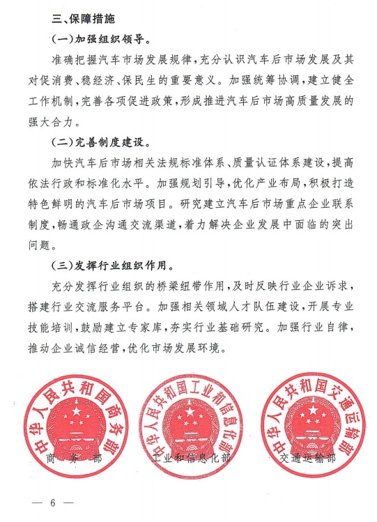 《指导意见》要求,准确把握汽车市场发展规律,充分认识汽车后市场发展的积极重要意义。加快汽车后市场相关法规标准体系、质量认证体系建设,提高依法行政和标准化水平。充分发挥行业组织的桥梁纽带作用,及时反映行业企业诉求,搭建行业交流服务平台。