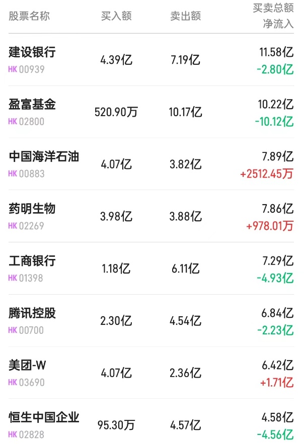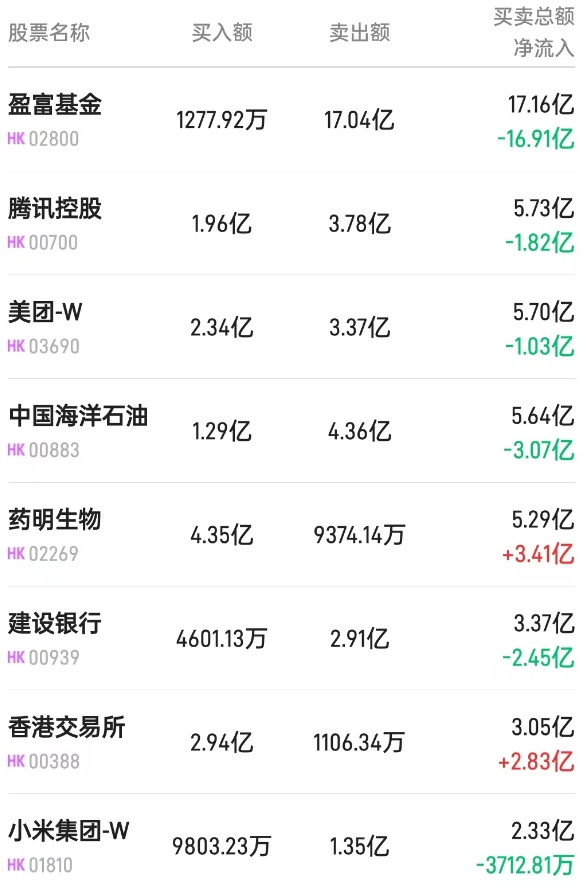 此外,中芯国际(00981)、中海油(00883)、腾讯(00700)分别遭净卖出3614万、2.81亿、4.05亿港元。