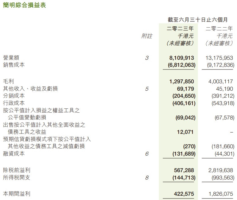 回溯往绩,最近两年里建滔积层板属实是感受到了来自下游的“寒意”。根据公司的财报,23H1期间建滔积层板实现收入81.1亿港元,同比减少了38.5%;归母净利润4.2亿港元,同比减少了77%。