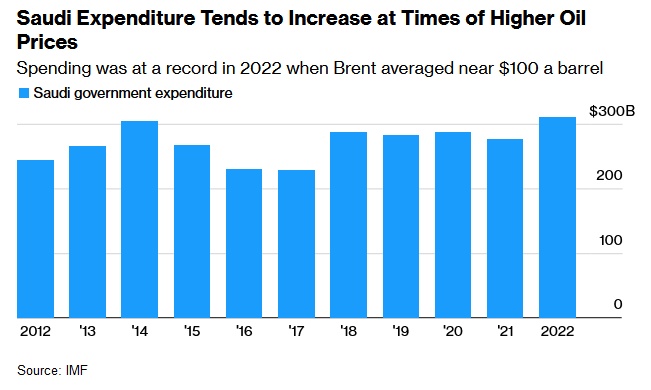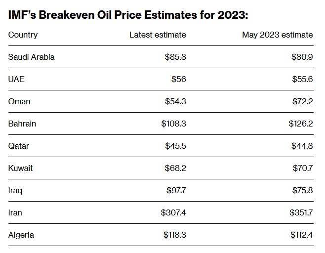 这是IMF今年第二次上调这一预测。此外,Bloomberg Economics预计,考虑到沙特今年更慷慨的支出,沙特需要每桶91美元的油价才能在下半年保持公共财政平衡,比六个月前的预测高出了10美元。