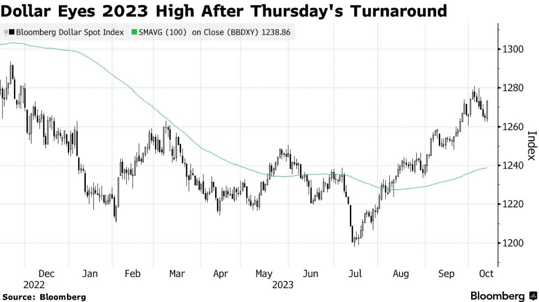 截至发稿,美元指数上涨了约0.7%,这是自9月5日以来的最大涨幅,部分原因是美国国债收益率飙升。美元兑10国集团所有货币走高,其中澳元和新西兰元涨幅最大。