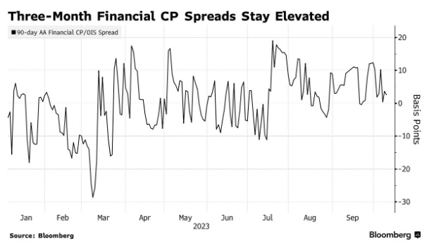 在这些全球最大的金融机构公布其第三季度业绩之际,融资市场显示,银行正开始支付更多资金,以保护其现金储备不缩水,并防止未来的存款挤兑。目前,银行已经看到储户纷纷转向收益率更高的替代品,如国库券和货币市场共同基金,这种压力可以从国库券和商业票据的利率与追踪美联储利率预期的掉期利率之间的差距中看出。