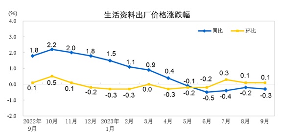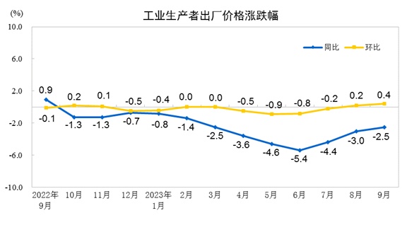 2023年9月份工业生产者出厂价格同比下降2.5% 环比上涨0.4%