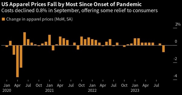 智通财经获悉,美国人的日常消费终于从通胀中得到一些缓解,上个月主要商品的价格有所下降。周四公布的数据显示,服装价格出现了自疫情爆发以来的最大跌幅,从女装到男装和童鞋,服装价格全面下跌。此外,上个月许多家庭用品的价格都有所下降。卧室家具价格创下一年多来的最大跌幅。洗衣设备等家电价格也出现了大幅下降。