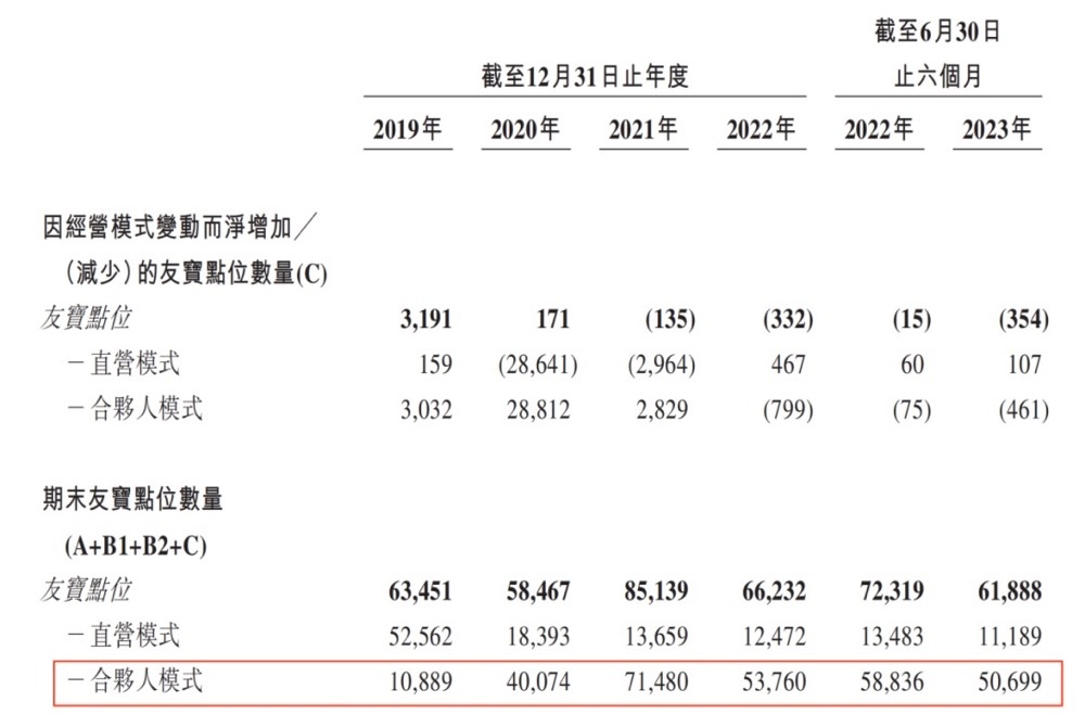 然而好景不长,如果商品销售不赚钱,加盟商自然留不住。据公开信息显示,2020年起,友宝在线的加盟商流失较为严重。基于此,友宝在线开始弱化加盟模式、强化合伙人模式。