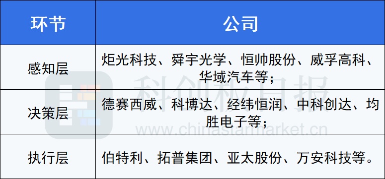 据《科创板日报》不完全整理,智驾产业链相关企业主要有: