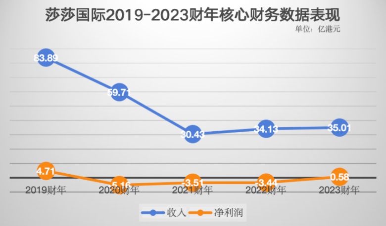 回溯往绩,2019财年-2023财年莎莎国际的业绩像是坐上了“过山车”。2019财年时,莎莎国际一年豪赚了83.89亿港元,当年净利润亦达到了4.71亿港元,然后隔年便风云突变,此后莎莎国际连续三个财年录得净亏损,收入也在2021财年时跌至30.43亿港元,创下了近年来的最低记录。后续得益于疫后零售业逐步恢复,莎莎国际的业绩也开始筑底后缓慢上行。