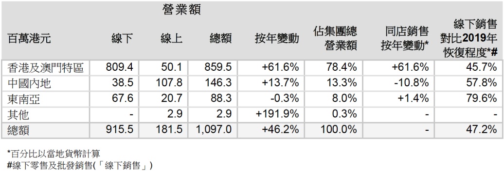 首先值得肯定的是,莎莎国际在其大本营港澳地区延续了强劲增长的势头。根据最新披露的数据,第二财季里莎莎在港澳地区的表现突出,线下销售额同比增长了69.4%,同时包括同店销售、平均客单价以及总交易数增幅分别达到了61.6%、32.4%、32.1%。而对比2019年的数据,目前莎莎在港澳地区的恢复度已达到了45.7%。鉴于公司在该地区的增势强劲,预计在下半财年这一比例还会进一步走高。