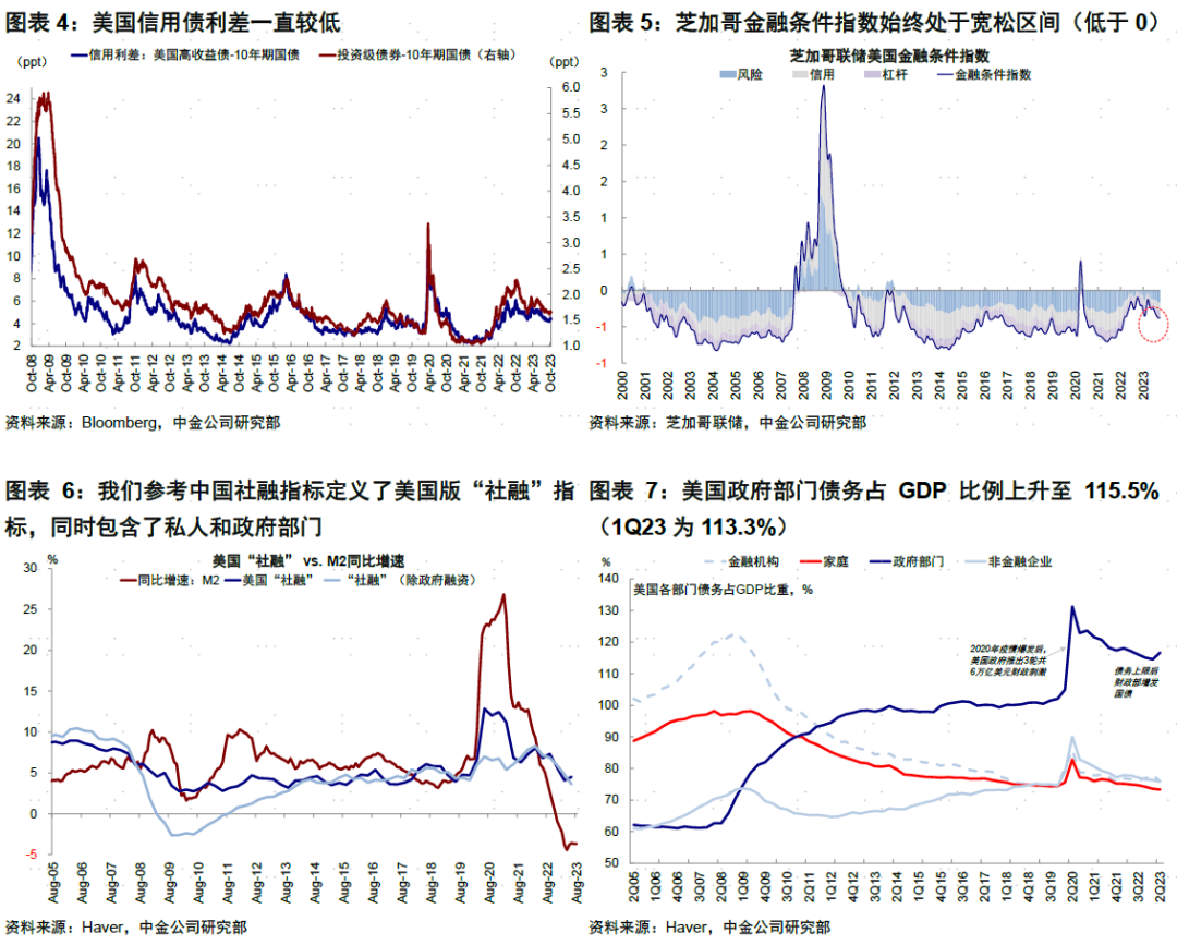 如上文分析,二季度政府部门的信用扩张抵消了私人部门的信贷收缩,减缓了货币紧缩对信贷的传导作用,也是推动美国从年初“软着陆”到三季度“再加速”的主要原因之一。