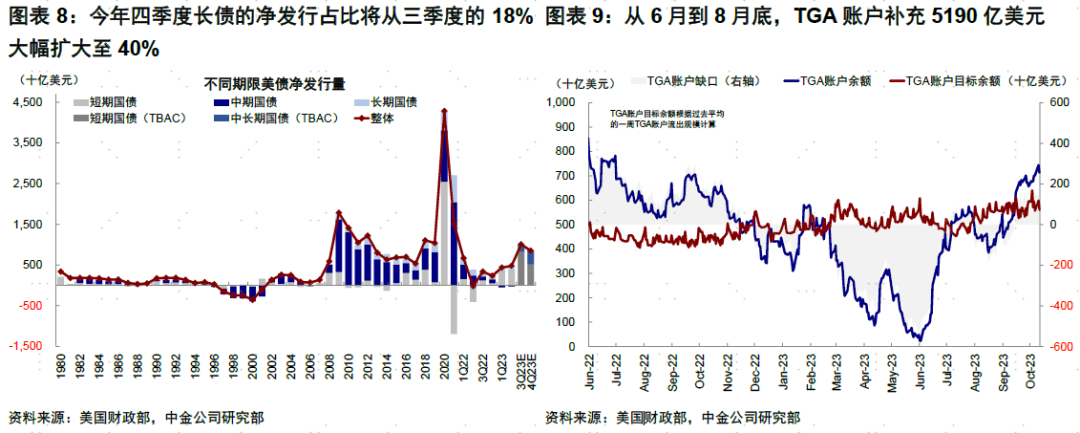 往前看,债务上限对支出的约束、大选年两党博弈以及利息支出上升都可能压制2024年的财政刺激空间,这意味着此前依赖政府加杠杆的宽信用周期可能收紧(2024年的国债到期规模也大于2023年),除非再度出现类似于硅谷银行的意外风险事件。具体来看,