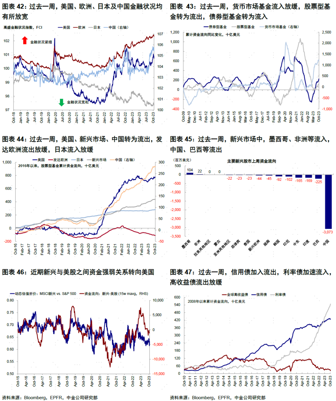 资金流向:货基流入放缓,股基转为流出,债基转为流入。过去一周,货币基金流入放缓,股票型基金转为流出,债券型基金转为流入。分市场看,美国、新兴市场、中国转为流出,发达欧洲流出放缓,日本流入放缓。