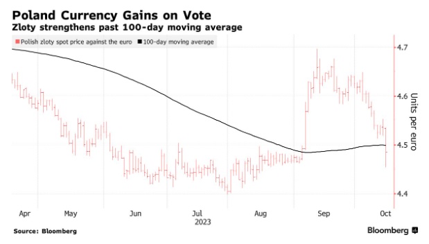 与此同时,在亲欧盟的公民联盟在上周日的大选中接近胜利后,波兰股市、债市和货币均有所上涨。包括高盛在内的基金经理表示,新政府可能会出台审慎的财政政策,并导致央行变得更加鹰派。