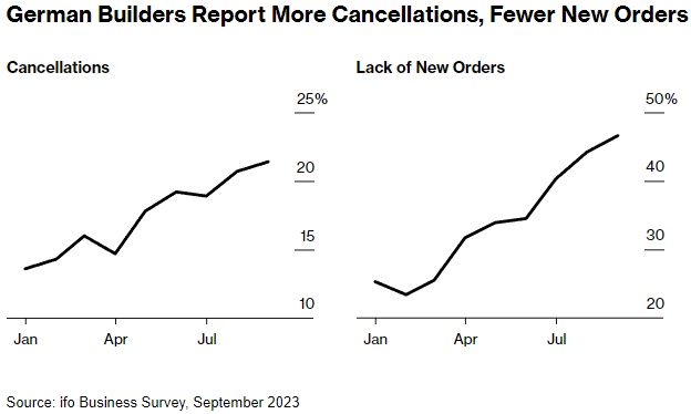 智通财经APP注意到,随着项目取消达到创纪录水平,德国房地产行业在危机中陷得更深,这促使建筑公司对未来的悲观情绪比以往任何时候都要强烈。总部位于慕尼黑的Ifo研究所(Ifo Institute)的一项调查显示,今年9月,21.4%的住宅建筑商表示,他们受到了建设项目取消的影响。这是自1991年有记录以来的最高水平,比8月份的20.7%还要糟糕。
