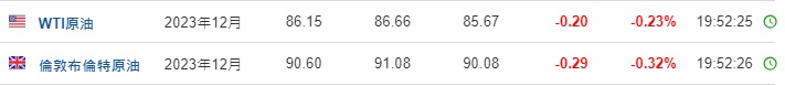 3. 截至发稿,WTI原油跌0.23%,报86.15美元/桶。布伦特原油跌0.32%,报90.60美元/桶。