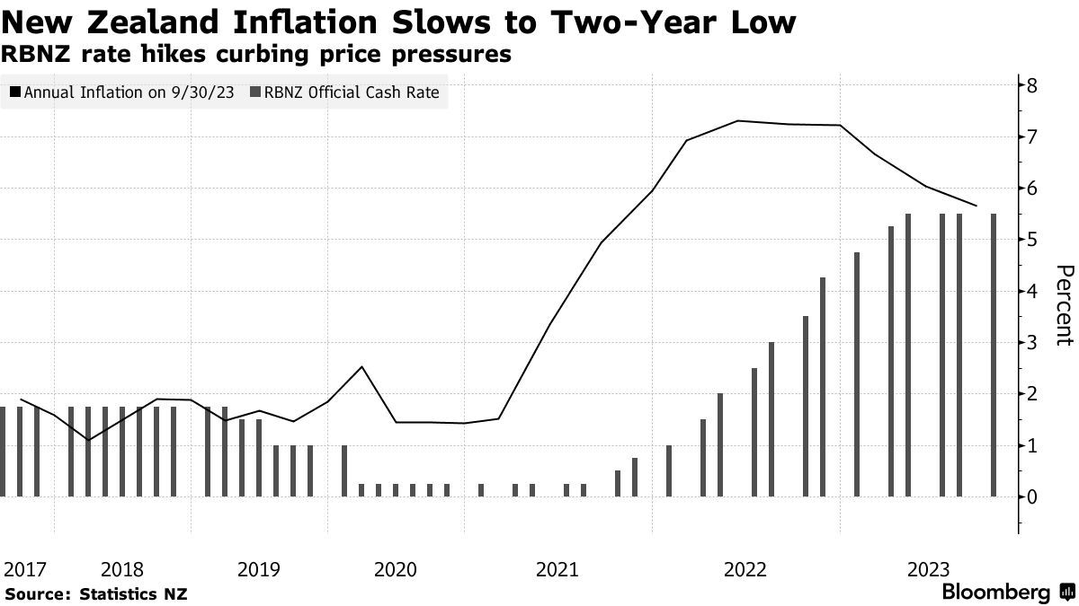 智通财经APP获悉,新西兰第三季度CPI同比涨幅低于经济学家预期,进一步表明新西兰联储的紧缩行动已经走到了尽头。周二公布的数据显示,新西兰第三季度CPI同比上涨5.6%,低于经济学家预期的5.9%和前值6%;环比上涨1.8%,低于经济学家预期的2%,但高于前值1.1%。