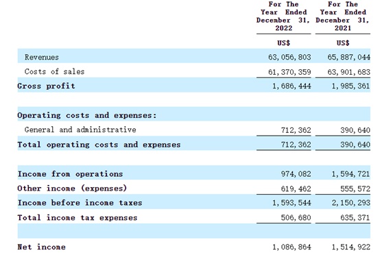 由成本方面来看,该公司的销售成本主要是货运成本,如人工成本、分包运输成本、港口成本、燃料成本、维修和维护、卡车和设备的折旧费用、保险成本和仓库租金费用。但细分来看,多数成本大项均在2022年度有所下降,如人工成本由上年同期的2573万美元降至2234.06万美元,同时因集装箱运输业务量的下降造成港口成本的缩减。