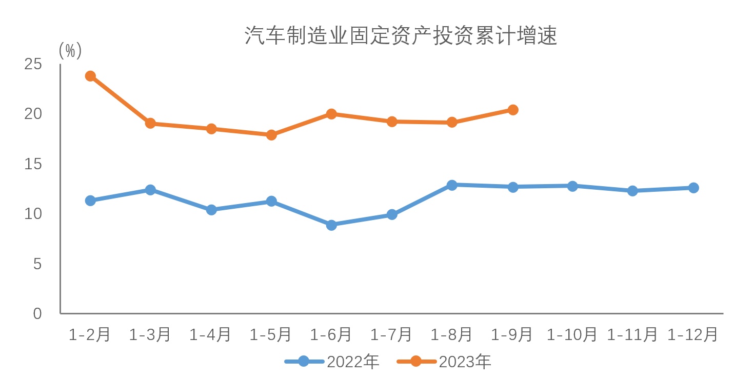 1-9月,汽车制造业固定资产投资保持较快增长。1-9月,汽车制造业固定资产投资同比增长20.4%,高于全国固定资产投资17.3个百分点。