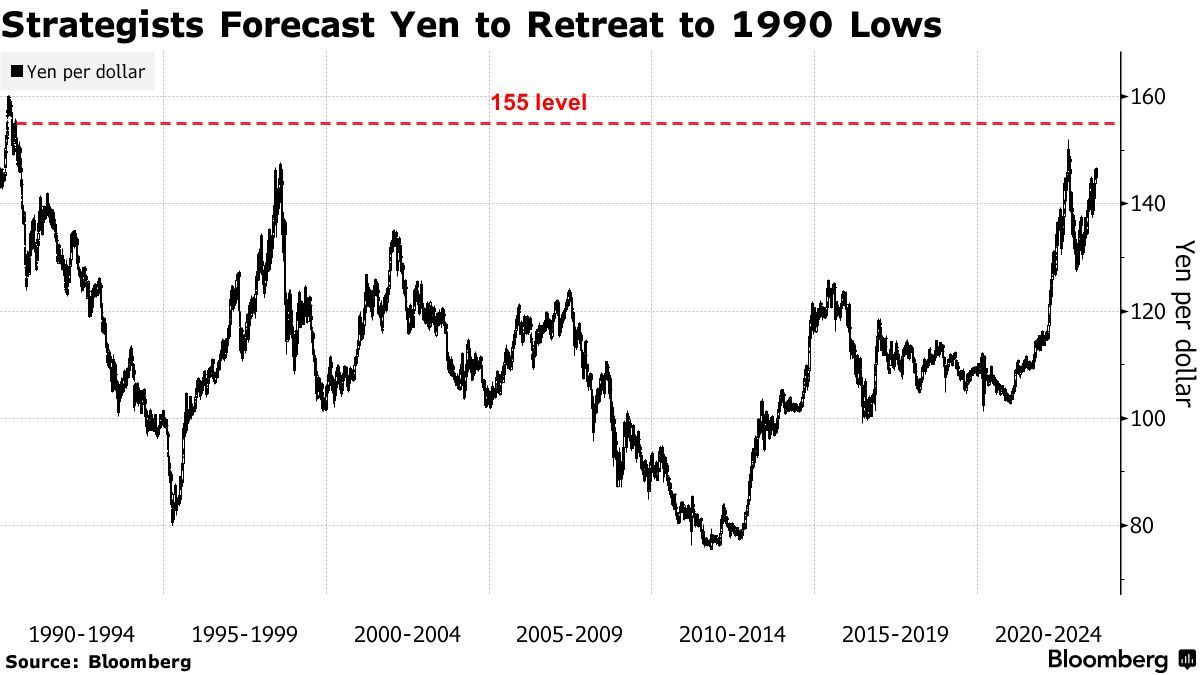 美银预计,到明年第一季度,美元兑日元汇率将达到155,这也是一位日本前高级外汇官员所指的日本政府将“开始担心”的水平。