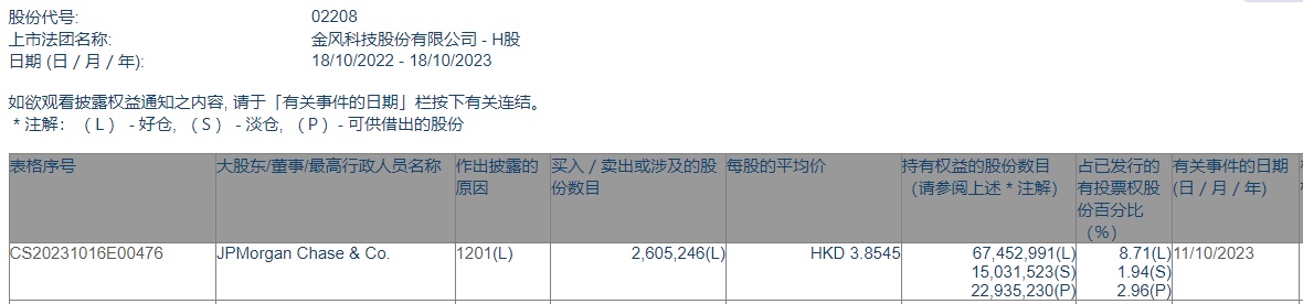 智通财经APP获悉,香港联交所最新资料显示,10月11日,小摩减持金风科技(02208)260.5246万股,每股作价3.8545港元,总金额约为1004.19万港元。减持后最新持股数目约为6745.30万股,最新持股比例为8.71%。